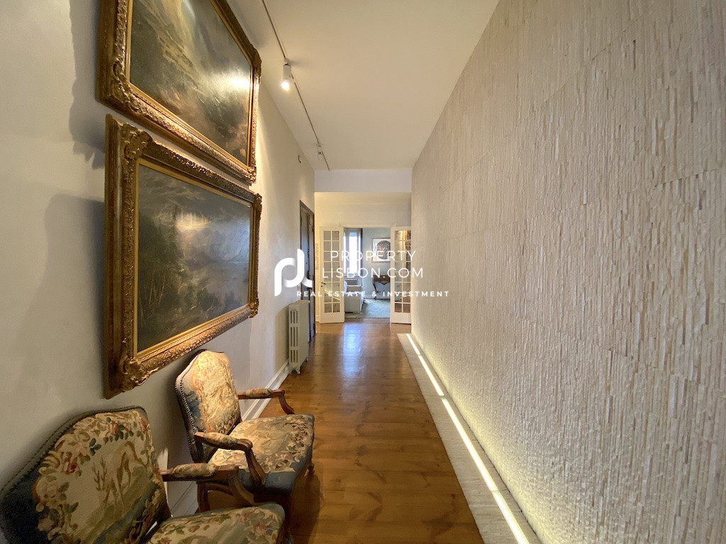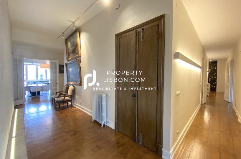 The property with roughly 370,00 m2 occupies the entire level and has two separate entrances (main and service)