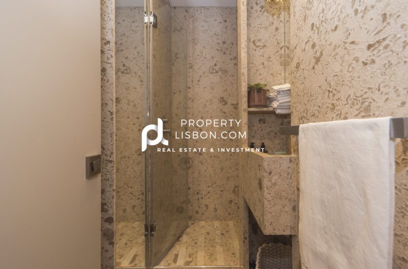 – The sanitary installations are in Estremoz Marble with sheets matched in an open book, Duravit toilets, and built-in taps.