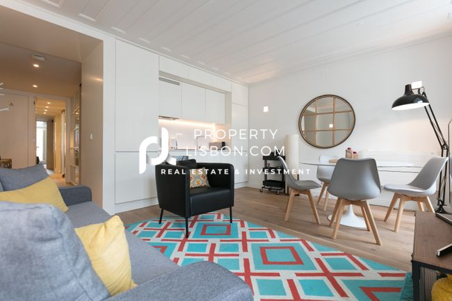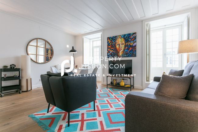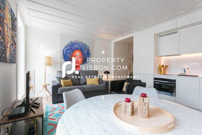 Discover this charming one-bedroom apartment, ideally located between Chiado and the Tagus River on Rua do Ferragial in downtown Lisbon. With an area of 56 sqm, this property stands out for its welcoming and bright atmosphere, featuring high-quality finishes and elegant furnishings.
