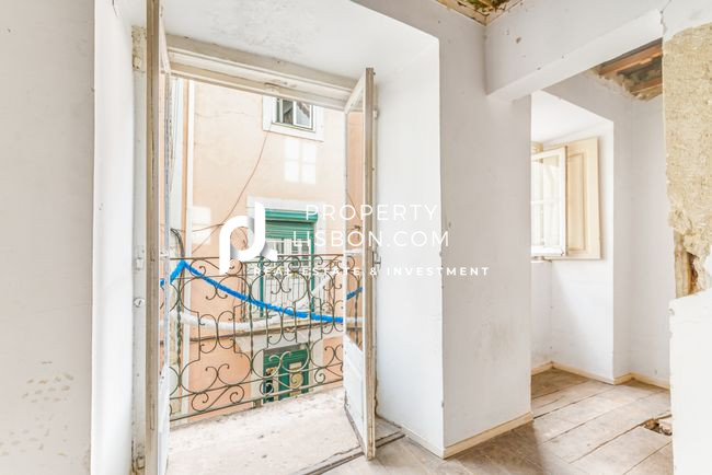 This T1 apartment is located on the 1st floor and boasts excellent natural light with two facades. It is situated in one of the most authentic areas of Lisbon. The living room features a pleasant balcony offering unobstructed views, while at the back, there is a small courtyard providing additional outdoor space.