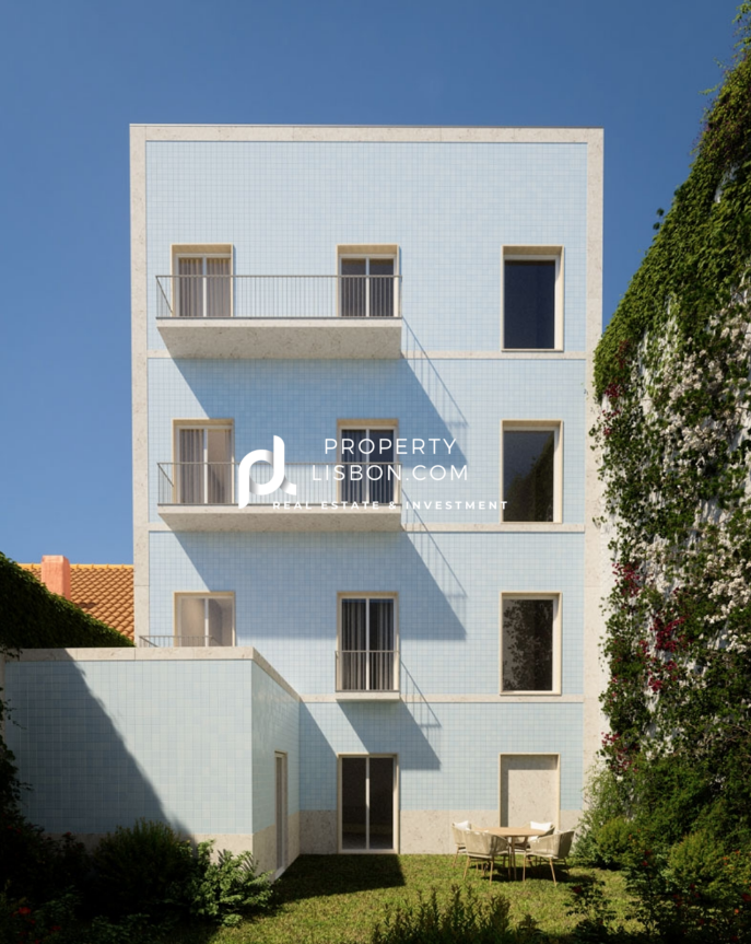 New small exclusive development offers a breathtaking view of the Tagus River and benefits from sunny southern exposure. The building preserves its original facade and historical characteristics while incorporating contemporary design elements and typical finishes of the area. It consists of four studios, one T0+1, and four T1 apartments spread across five floors, each with pleasant balconies and an inspiring vertical garden.