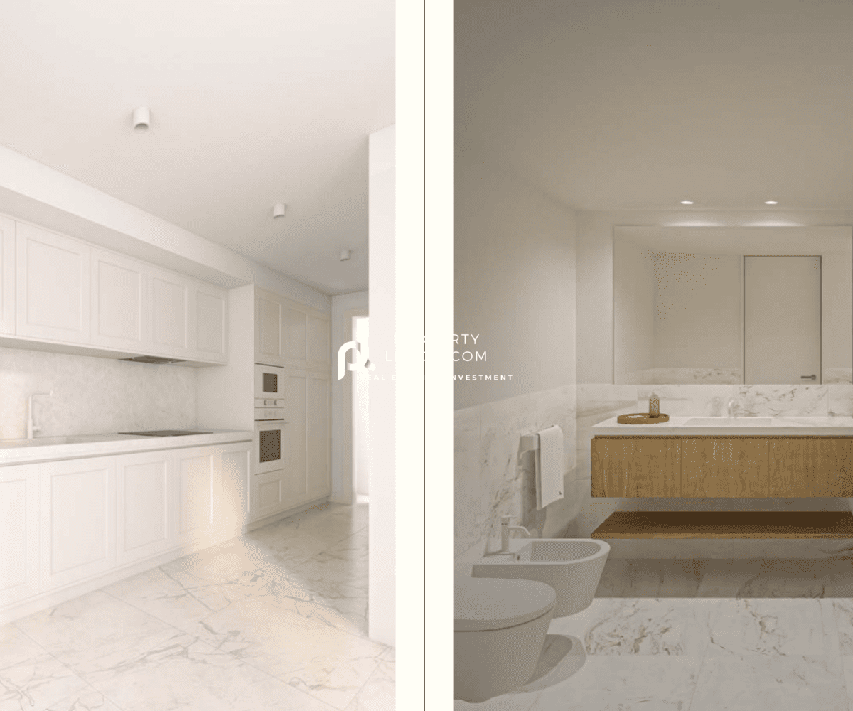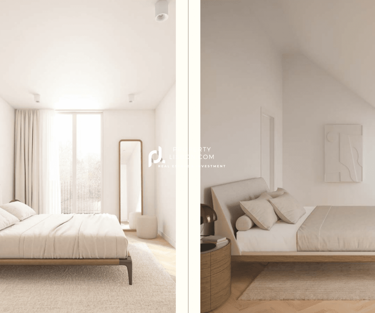 The project is an urban residential enterprise with lots of charm. It consists of two blocks in a single volume, two underground parking levels, and five floors of housing. It includes 24 different types of flats, from T0 to T6 +1. The ground floor features a gym and a communal garden exclusively for residents’ use. The top floors are reserved for five penthouses (duplexes).