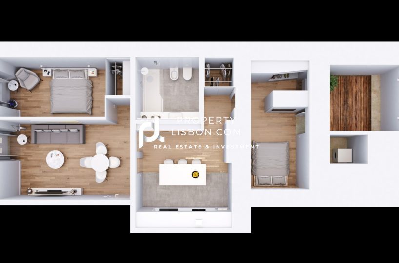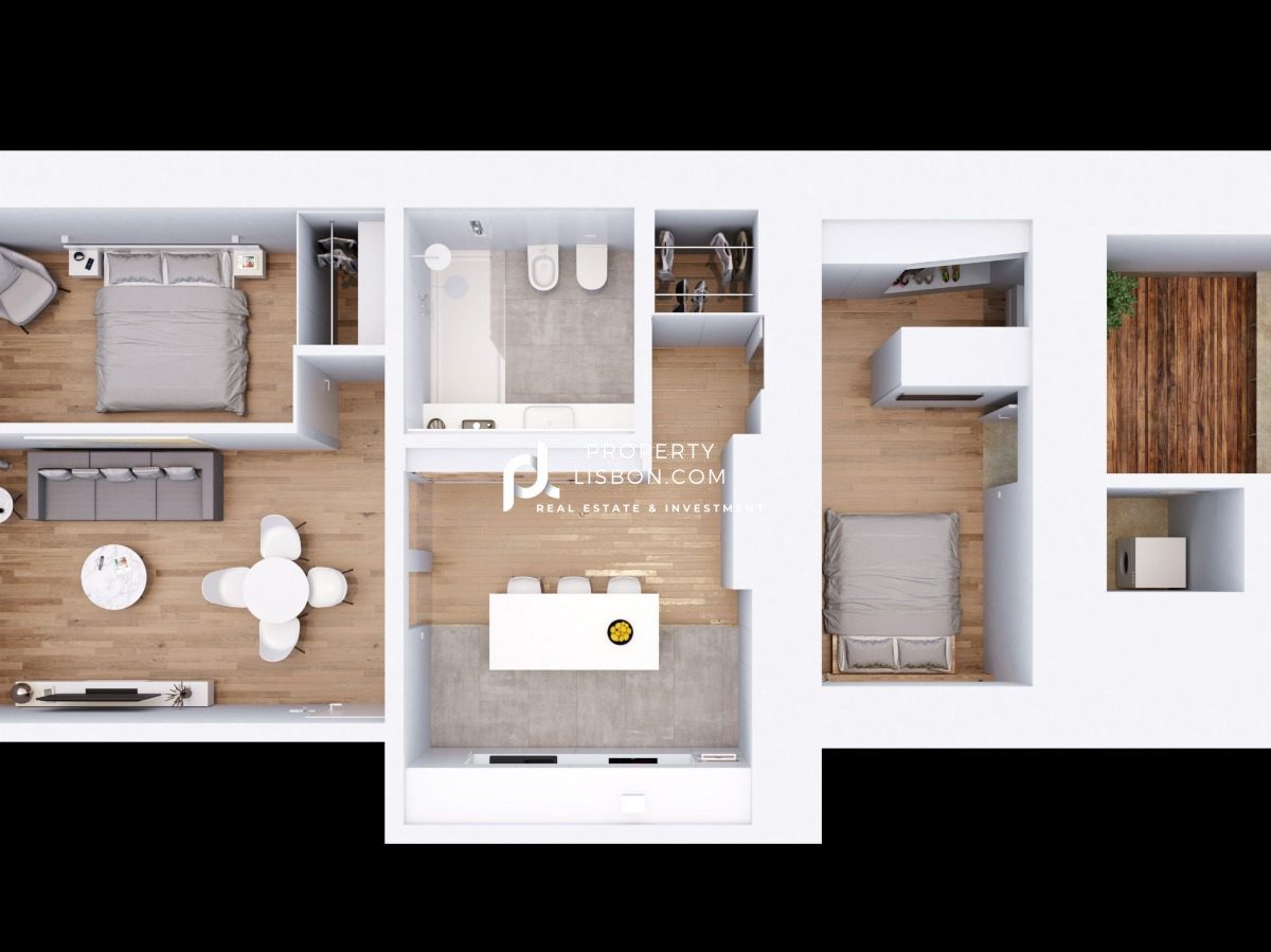 This appealing 2-bedroom apartment in Graça has undergone a complete renovation to provide maximum comfort and style. It features a spacious living room/kitchenette, 2 cozy bedrooms, and a modern bathroom, making it ideal for those seeking a new home or a lucrative investment. Additionally, the apartment includes an exclusive 8m2 patio, a kitchen equipped with Bosch appliances, and a range of enhancements such as wooden deck flooring, LED technology lighting in the garden, and pre-installation of air conditioning.