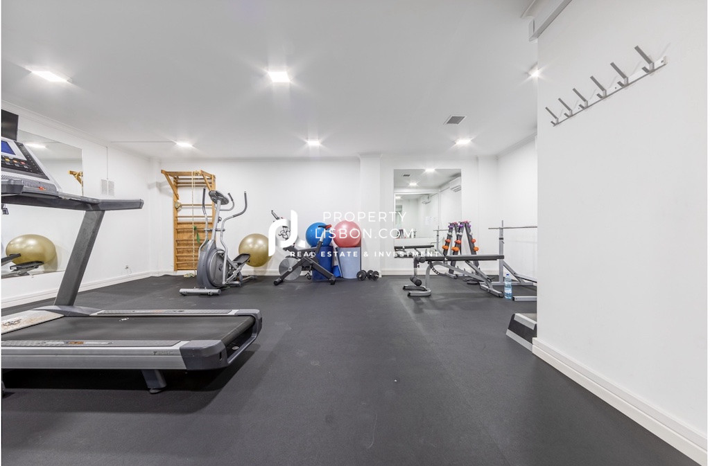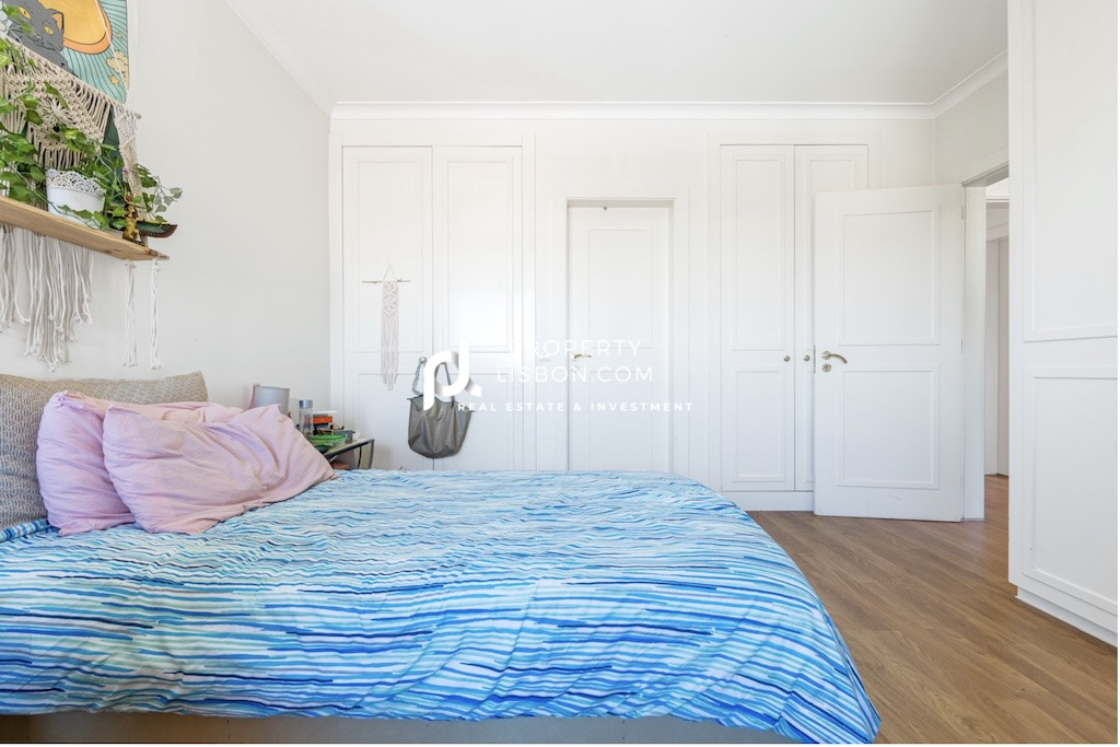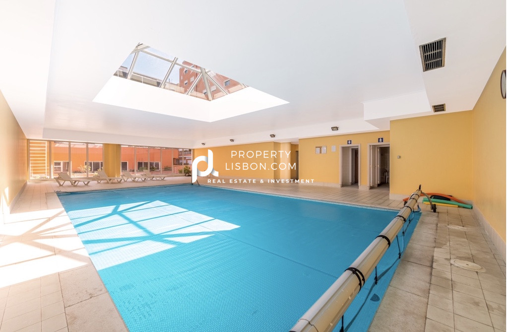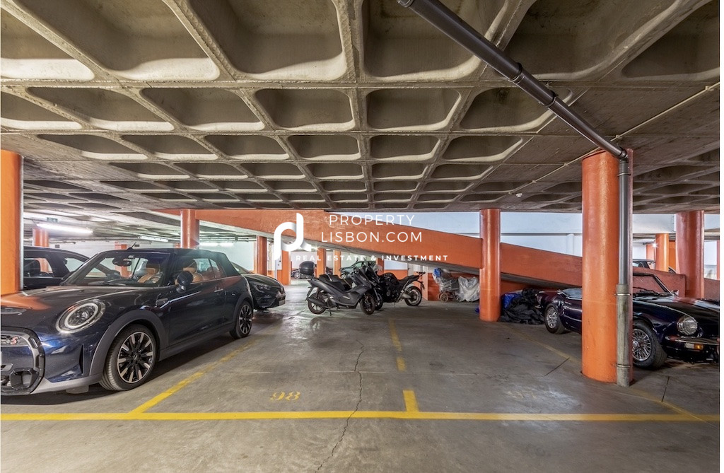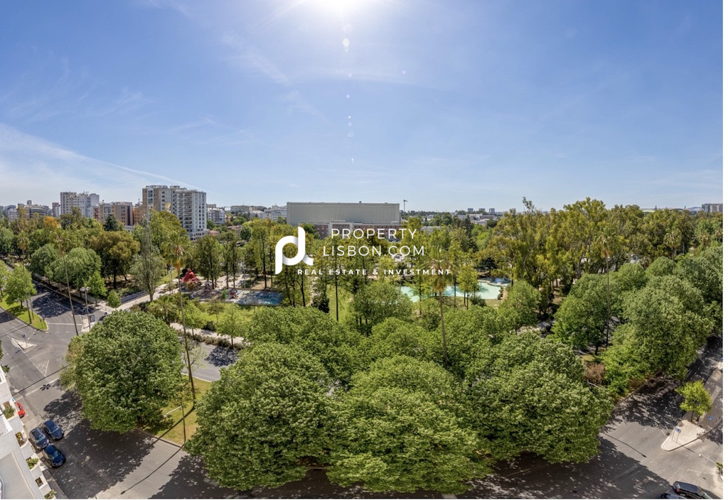 Spacious 3-bedroom apartment (200 m2, including terrace) with a view of Campo Grande gardens and the city of Lisbon. The building, constructed in 2000, offers various amenities such as a lobby with 24-hour concierge, garden, gym, pool, sauna, Turkish bath, parking for generously sized and electric vehicles, storage rooms, and 6 elevators.