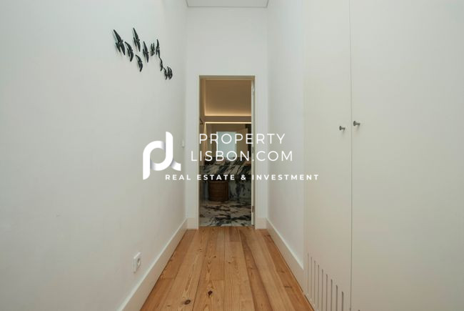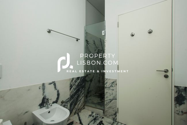 In the luxurious bathroom, both the walls and the flooring, including the spacious shower area, are finished with exquisite Estremoz marble, exuding elegance and sophistication. This attention to detail throughout the apartment enhances its aesthetic appeal and creates an inviting atmosphere that residents can be proud to call home.